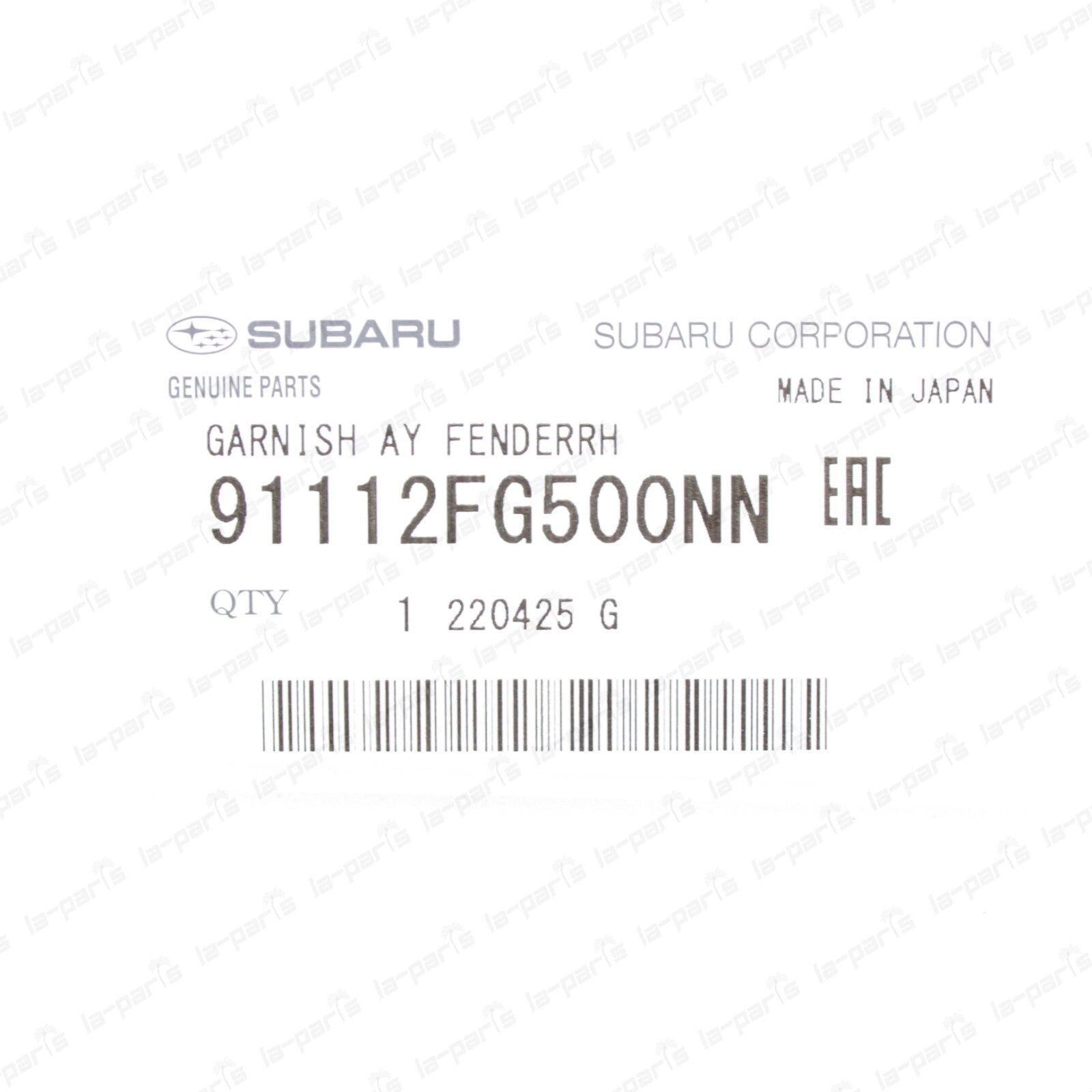 Genuine Subaru 11-14 Impreza WRX STi Right Fender Molding Garnish 91112FG500NN